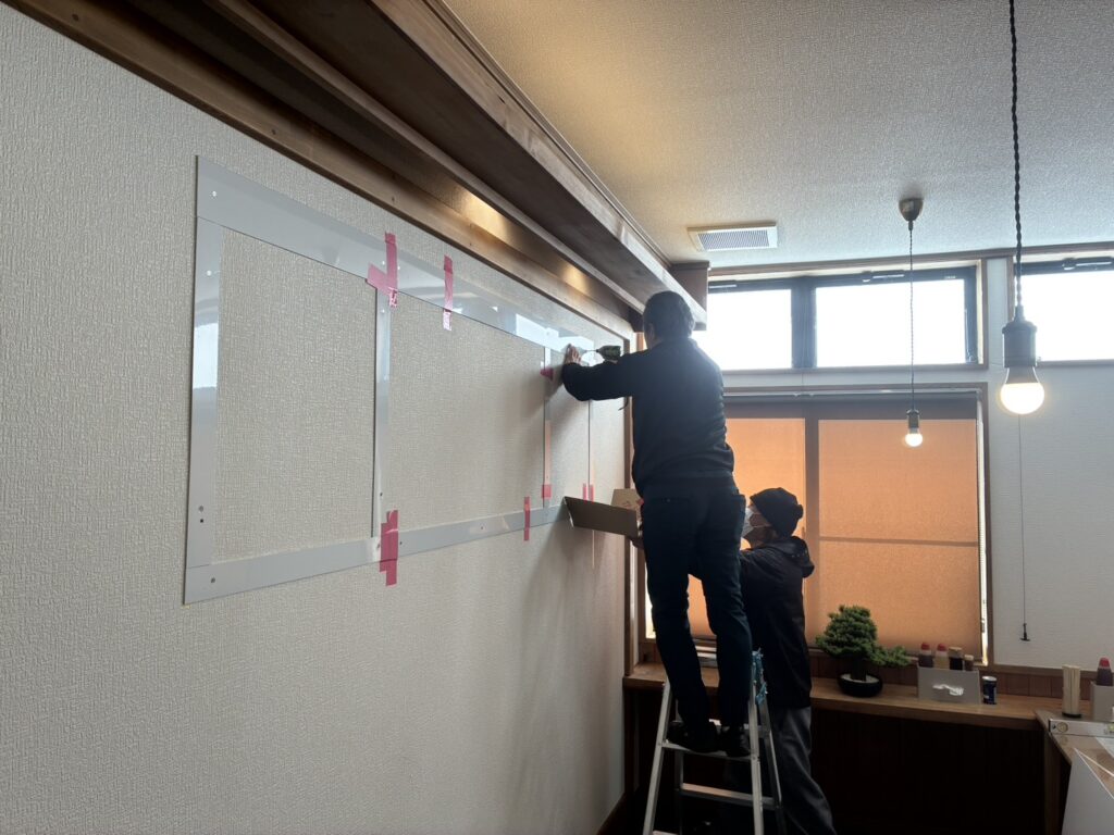 お食事中のお客様にご覧いただけるようにと、店内の目のつきやすい場所に施工させていただいております。