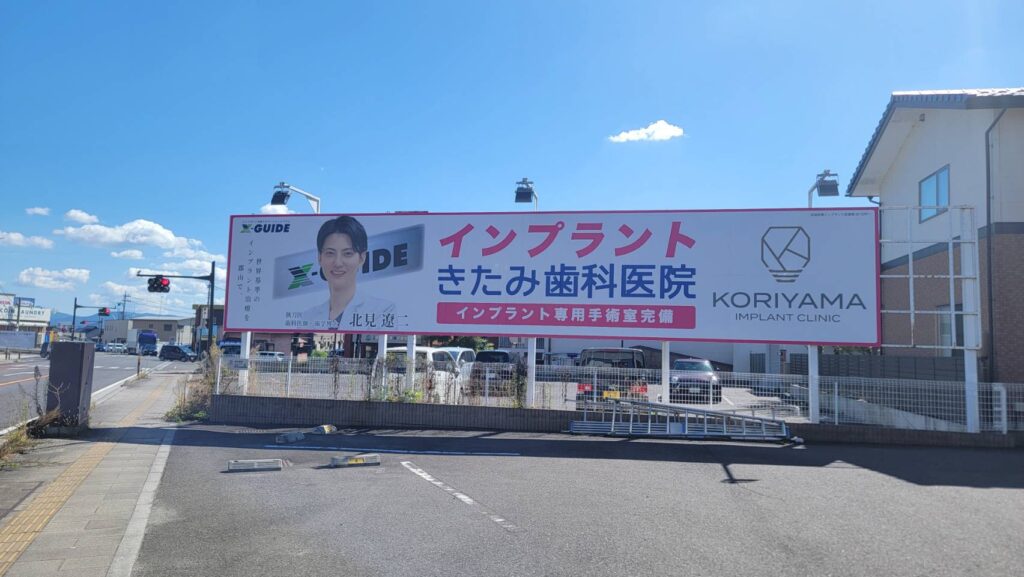 今回はインプラント・一般歯科クリニック様の、 サイズ高さ2.4m × 幅12.4m(約30㎡)の大型看板を施工させていただきました。 国道を走る多くのドライバー、そして通行人の目を引く、大変インパクトのある看板です。 デザインはクライアント様からのご指定...